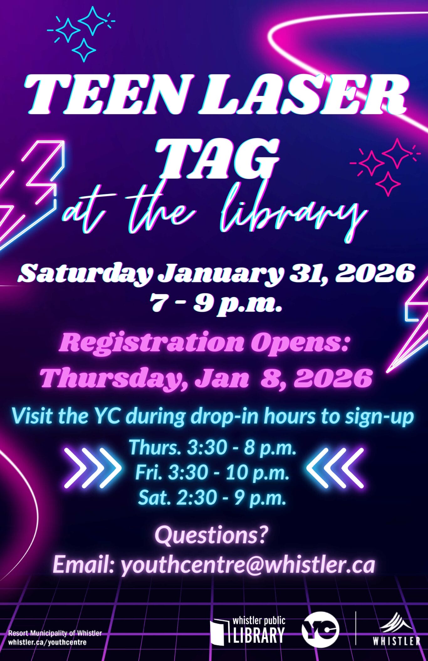 The Whistler Youth Centre + Whistler Public Library welcome you to experience the library like you never have before with our teen-only LASER TAG night.