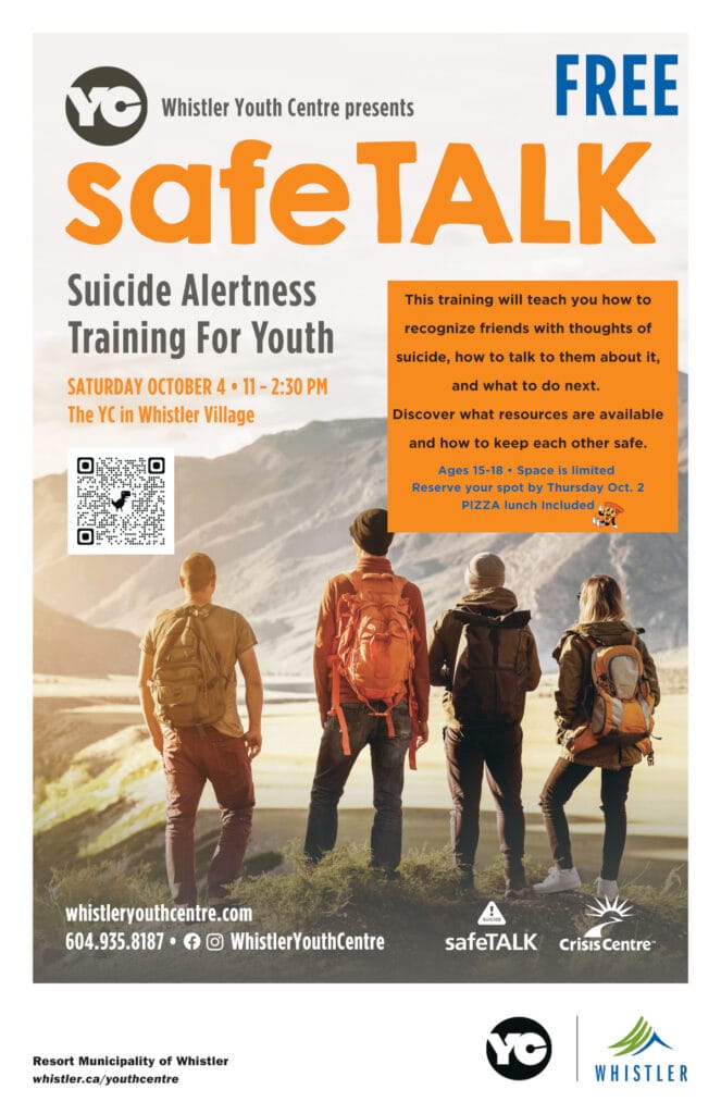 - Saturday, Oct. 4 – SafeTALK Training 11 – 2:30 PM (pre-registration required – see below)