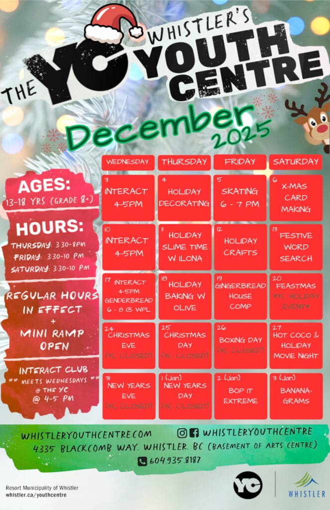 A warm, safe and great space for teens looking to connect, have fun, relax, and hang out. The Youth Centre (YC) is free and open to local and visiting teens on a drop-in basis.